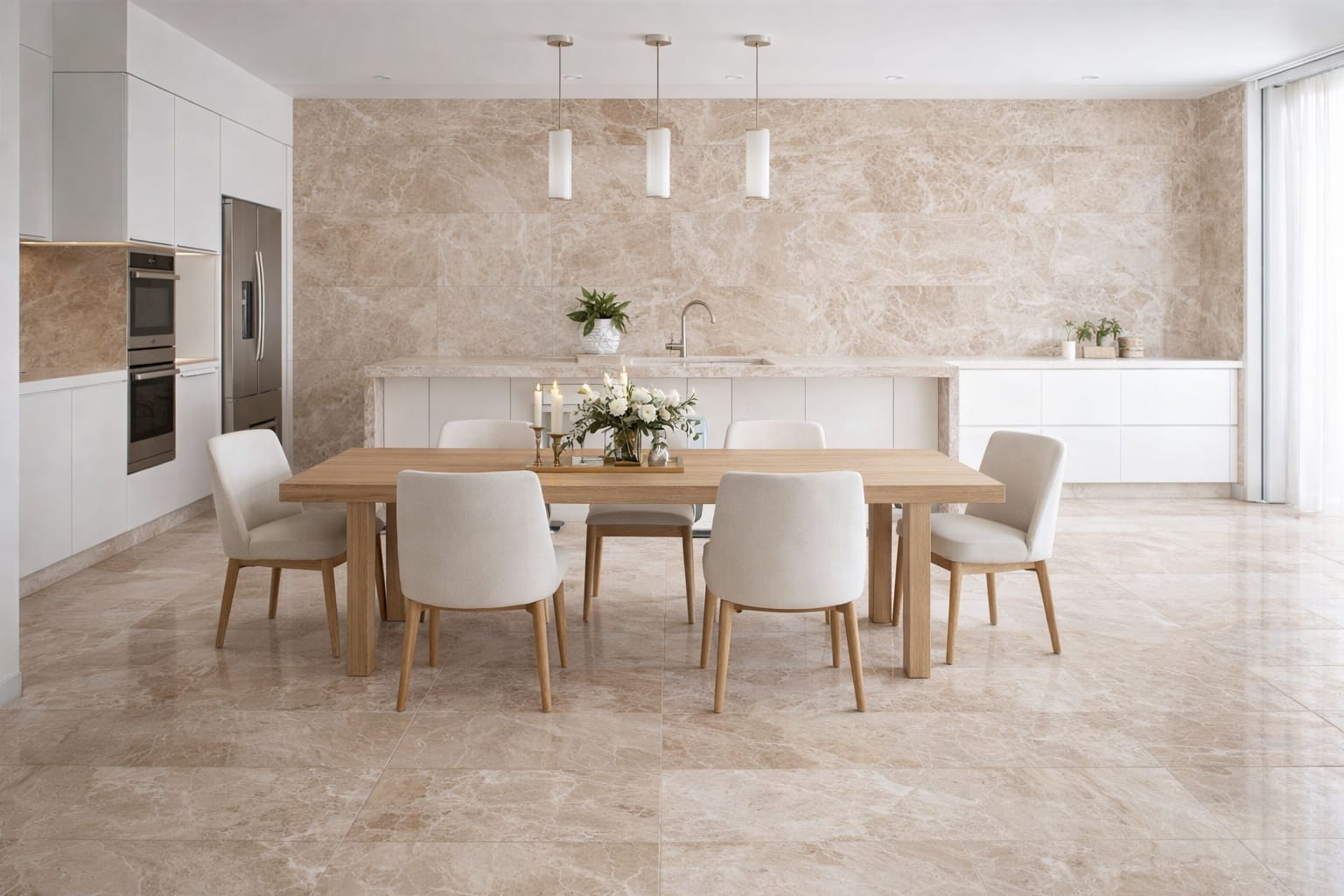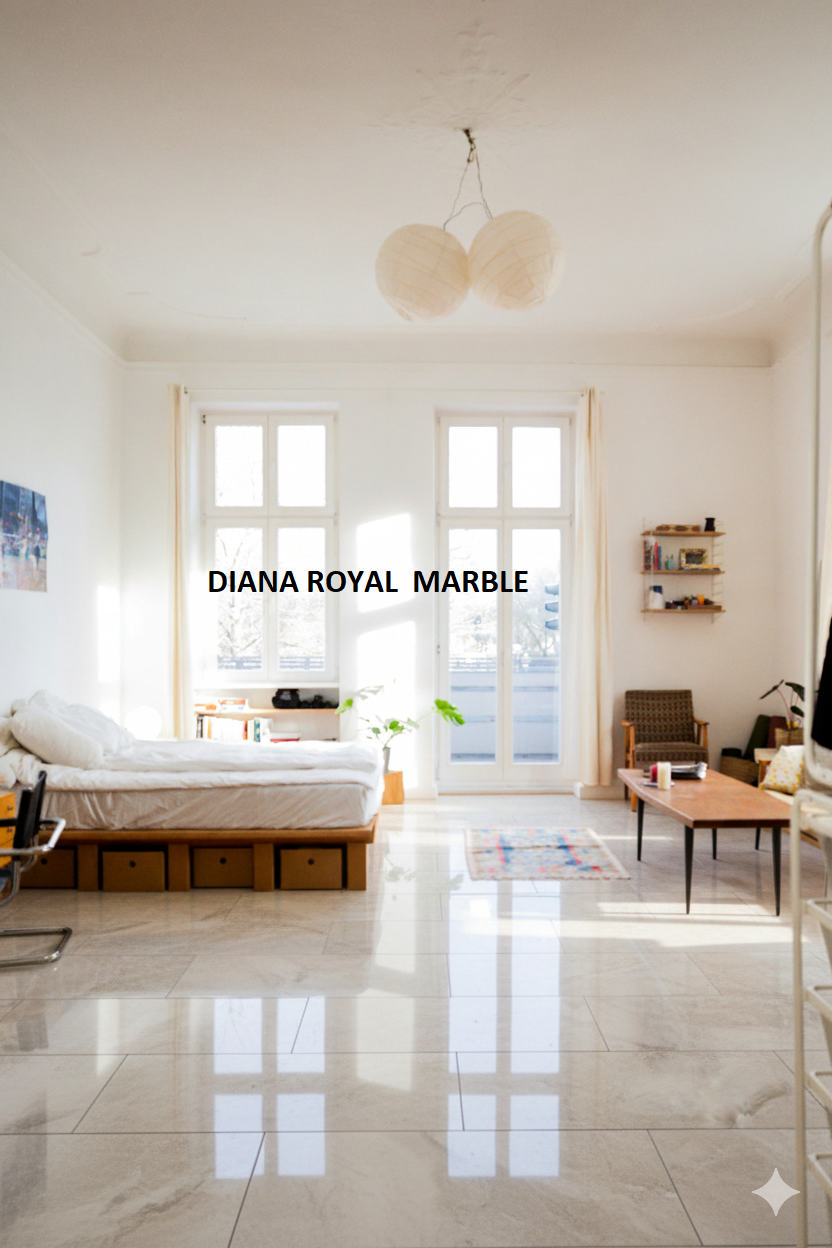Diana Royal Beige Marble is a marble selection with light wavy brown color marble with irregular wavy cream veins which carries all the characteristics of nature’s shaping power, allows continuity between closed and open areas with its diagonal structure on the surface. The Diana Royal Beige Marble Tile suits both commercial and residential property vertical and horizontal applications. With such a wide variety of choices, it’s adaptable for any interior design scheme.These marble tiles are mostly used as inside flooring in the living room, dining room, and bedrooms.Marble instantly elevate the appearance of a space, giving it a regal bearing that is hard to imitate. And marble is available in multiple colors, and even in stunning multicolor mixes, providing flexible options for a variety of decorative schemes. Marble is also considered a hypoallergenic choice for floors.Diana Royal is the ideal marble for those who prefer calm and neutral interiors. The smooth shade variation and milky veins Diana Royal has, makes it ideal for flooring and wall paneling.