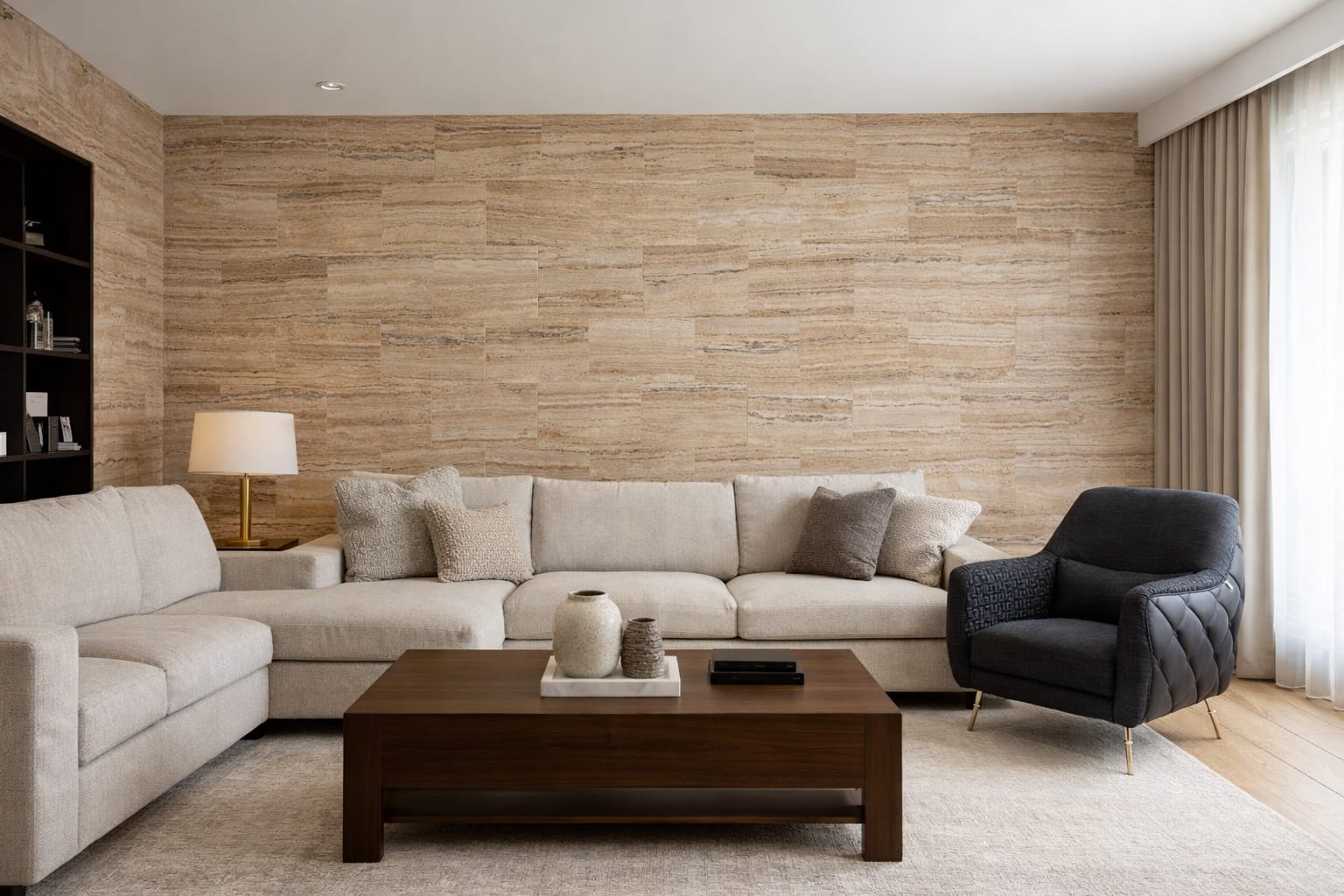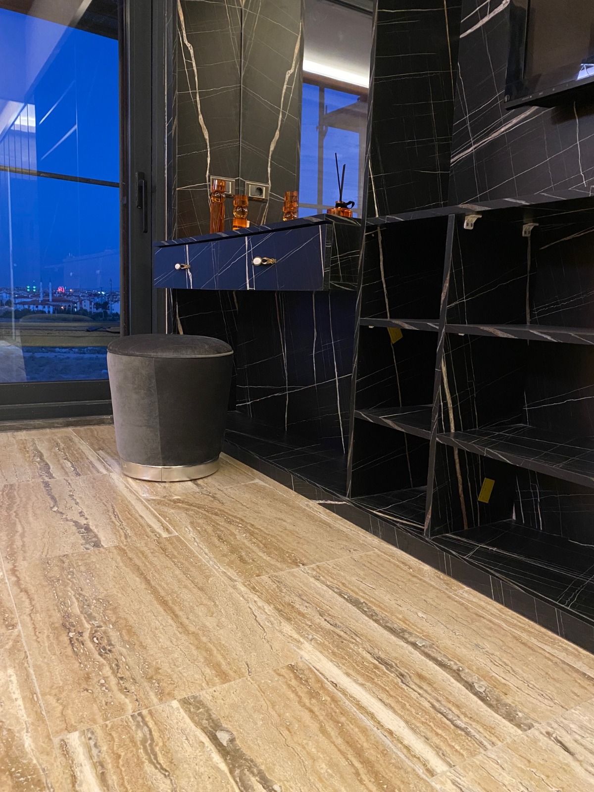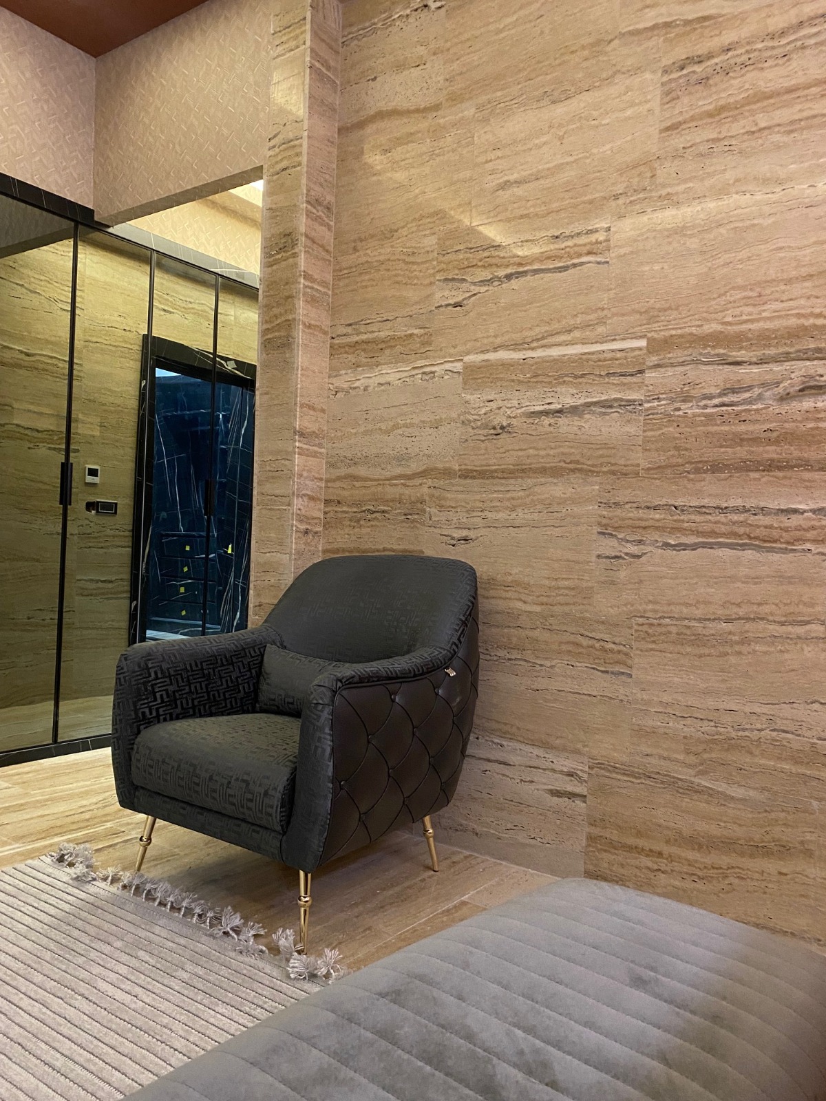 Tiramisu Vein Cut Travertine is one of a kind beige color-based travertine material with different color segments inside. Tiramisu-Leonardo travertine provides a warm atmosphere to the area where it is applied. Apart from this, it is possible to feel the naturalness visually and textually thanks to the unique texture and perforated structure of travertine.It could be combined with most color tones in a place and gives a place energy, warm and clarity. The veined structure of Tiramisu-Leonardo Cross Cut Travertine will bring dynamism to space.